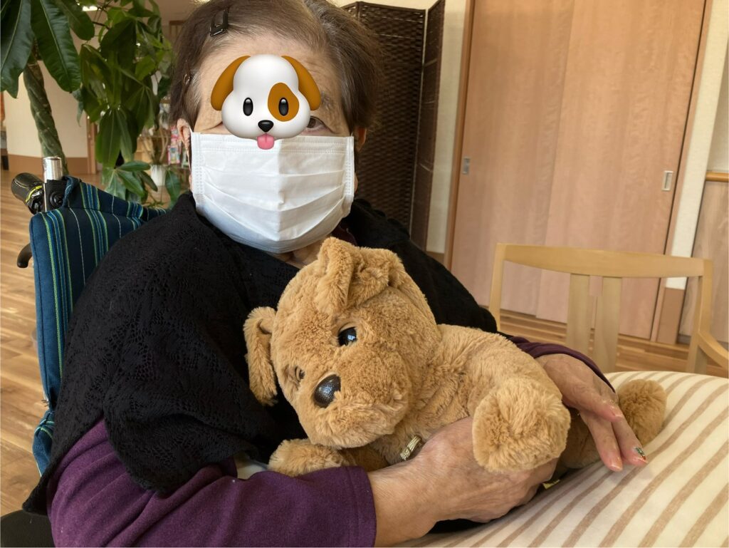グットタイムホーム釧路様の入居者K様の入居施設へ訪問ネイルにお伺いしてきました。今回はお気に入りのぬいぐるみを持ってきてくれました。 ワンちゃんのぬいぐるみは、おしゃべりをしたり、シッポも振ってくれます🐶