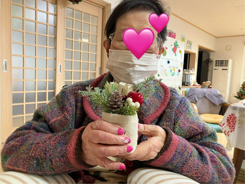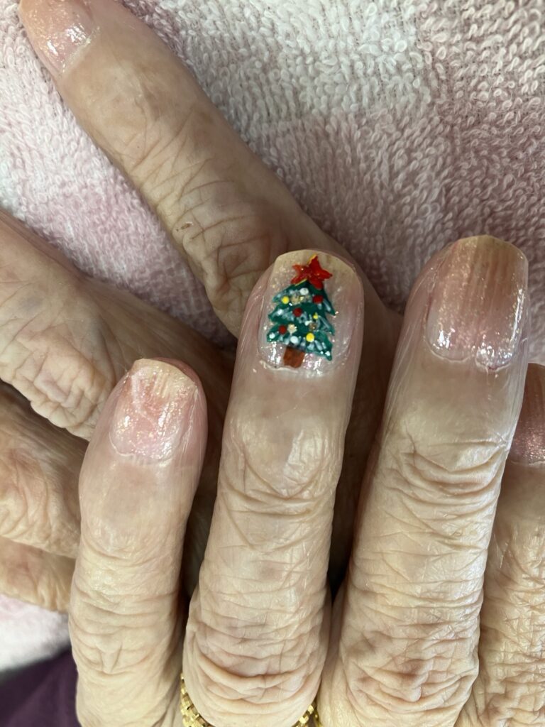 ピンクのネイルを選ばれた利用者様には、雪だるま☃を描かせていただきました。 あさがおさんの事業所内にはクリスマスツリーが飾られていました🎄