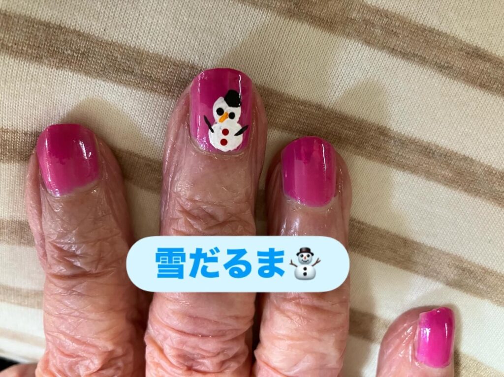 今回は、ピンクのネイルに雪だるまの☃絵を描かせていただきました。 次回は、年末に伺う予定ですのでお正月用🎍🪁のアートサンプルを用意して伺いますね。